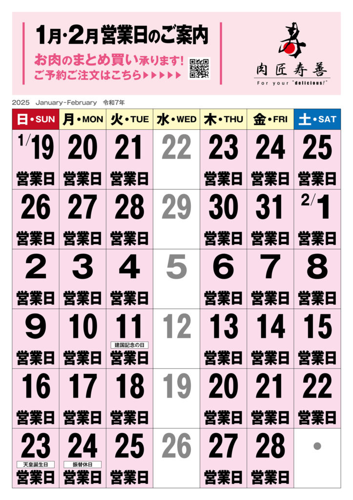1月19日(日)からの営業日のご案内です。